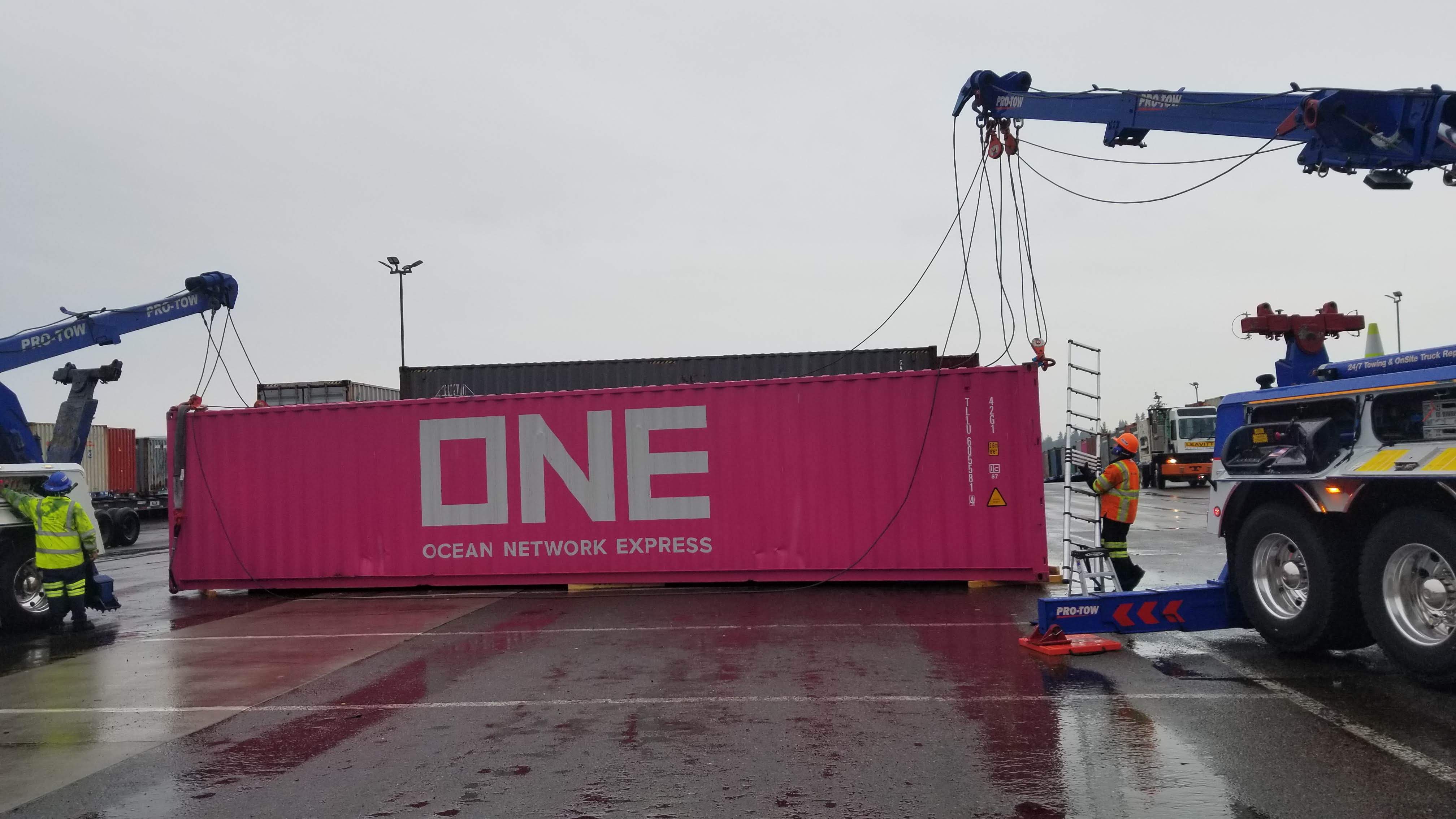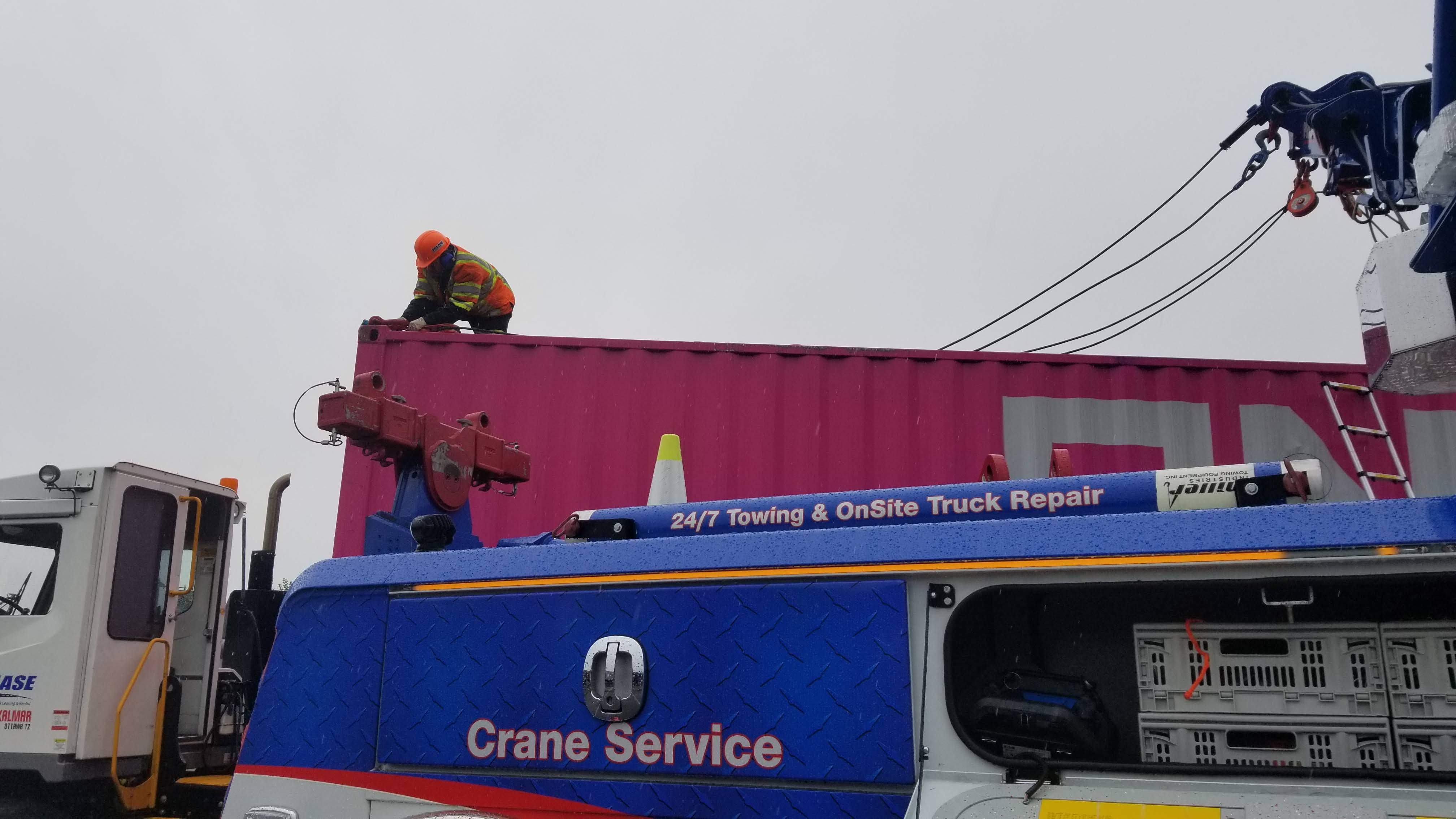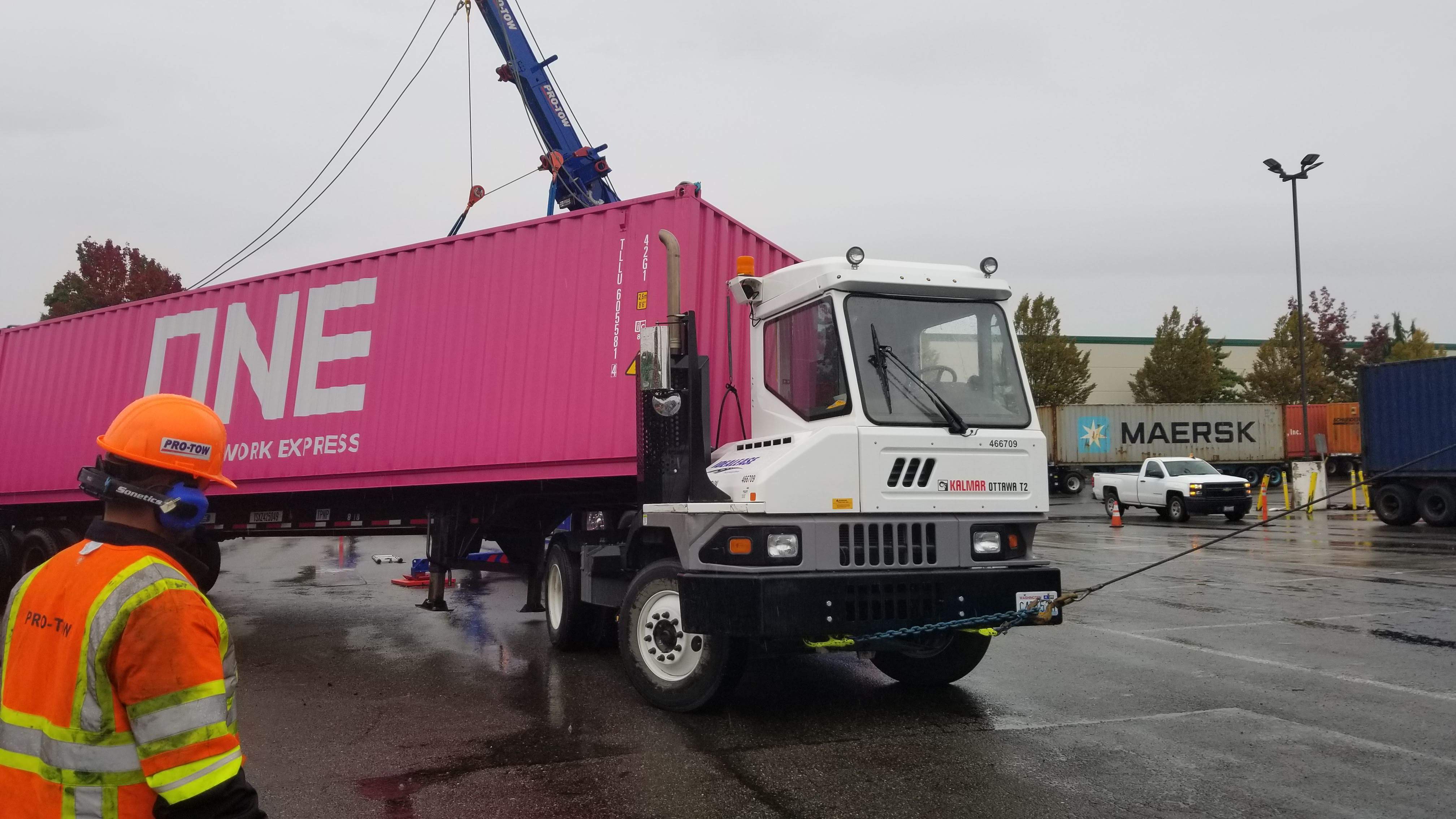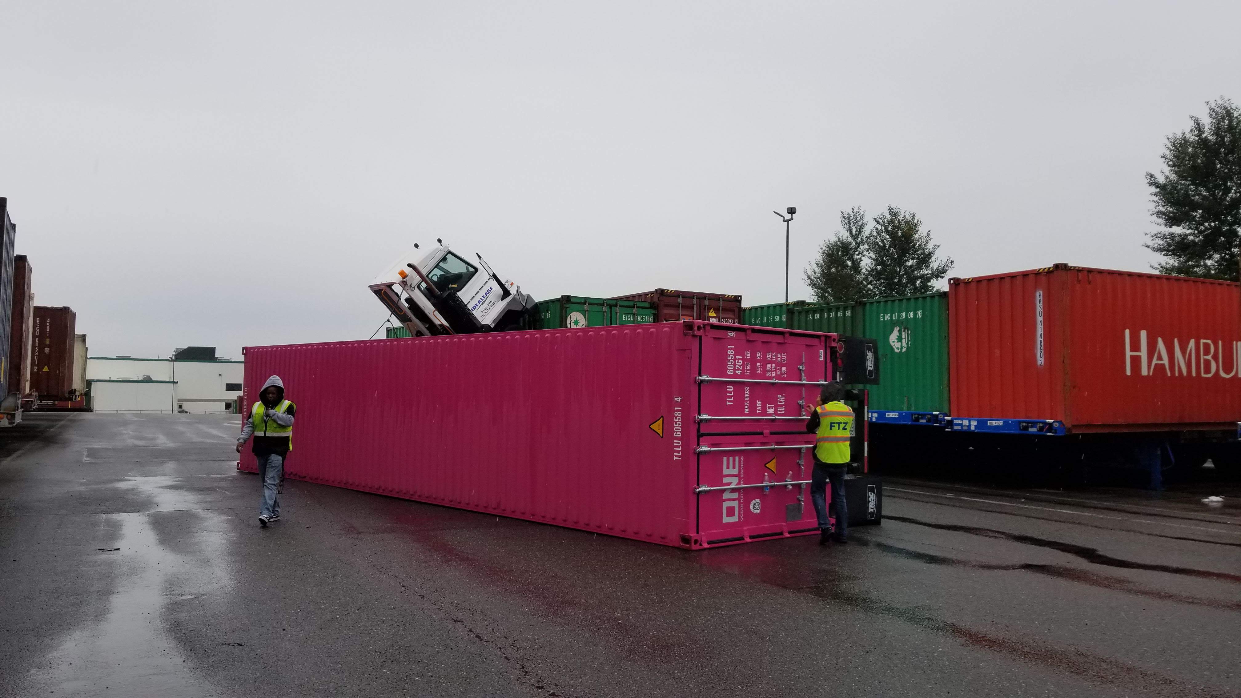 #teamprotow called on to perform an overhead lift for a semi-trailer heavily loaded with gravel that had become dislodged and jammed in the frame of the 2013 Peterbilt 378. #WSDOT Incident Response responded immediately to assist with lane closure and for quick clearance of the busy Issaquah section of I-90. After dislodging the semi-trailer from the Peterbilt, a replacement Freightliner was able to be successfully connected and the roadway fully opened.