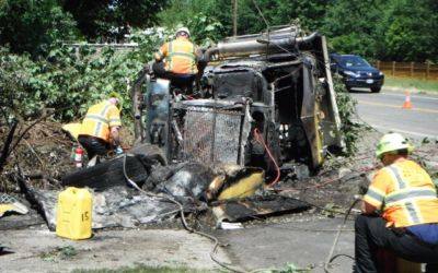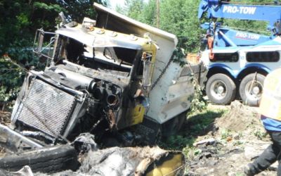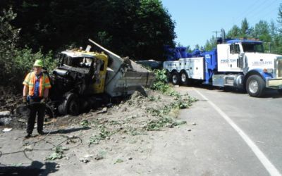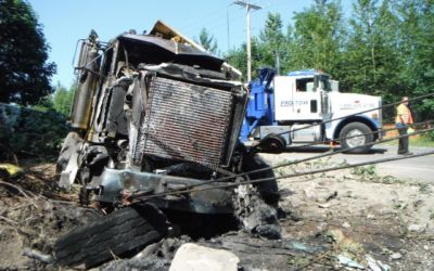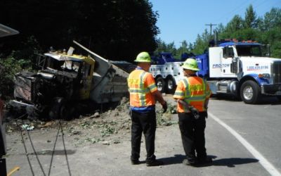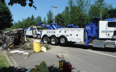Seafood In Seattle Cargo Recovery & Material Handling by Pro-Tow Auburn, WA. 16 pallets of frozen high value seafood came out of the rear of the trailer in downtown Seattle on an 11% grade, and blocking Denny Way. We quickly and efficiently worked to save nearly 100% of the load throughout the middle of the night. We performed temporary repairs to the trailer doors. We also procured added refer trailers and ensured minimal loss in a very unfortunate emergent situation.