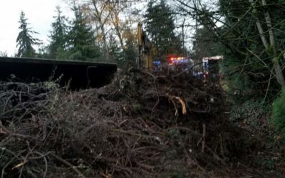 Team Pro-Tow decided to use our top-of-the-line Century Rotator to get this truck unstuck. A tow truck equipped with this rotator was the best choice because it could carefully and safely get this truck out, without damaging either the truck or slightly twisted trailer. After making a plan for recovery, we were able to remove the truck from its muddy prison and get it back on its route.