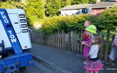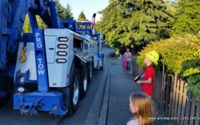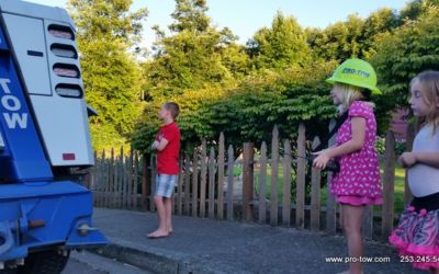 During a recent trip to Ferndale, WA to tow a tractor a trailer back to Seattle, WA we decided to stop and do a little training and recruiting at the same time. What we found was a few fabulous kids with great potential to be top tier tow truck operators. Their aptitude to operate the remote controls was like no other. They were able to flawlessly operate the tow truck boom. In addition, their excitement to work was incredible.  The police and highway departments will be in good hands as these recruits perfect their skills.