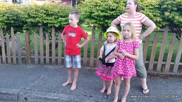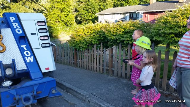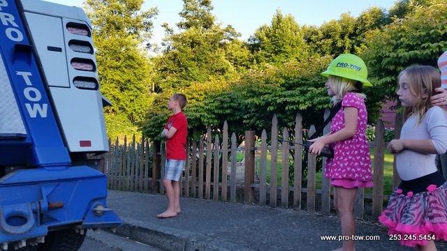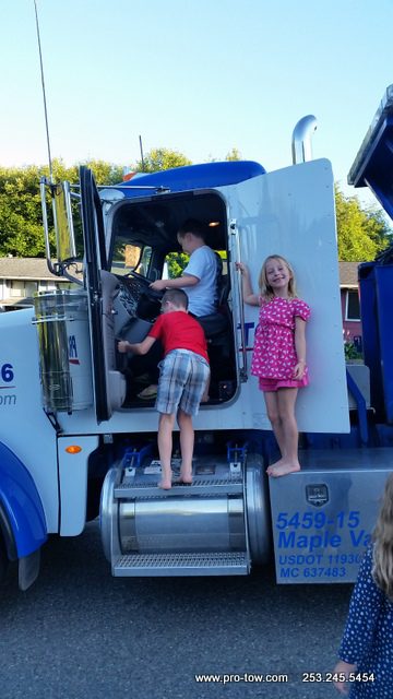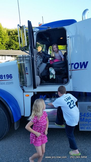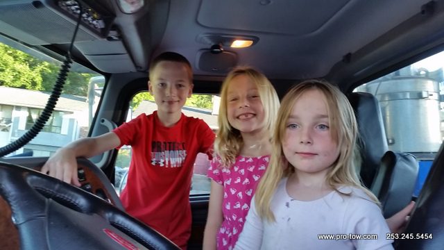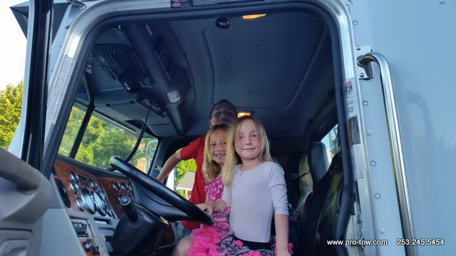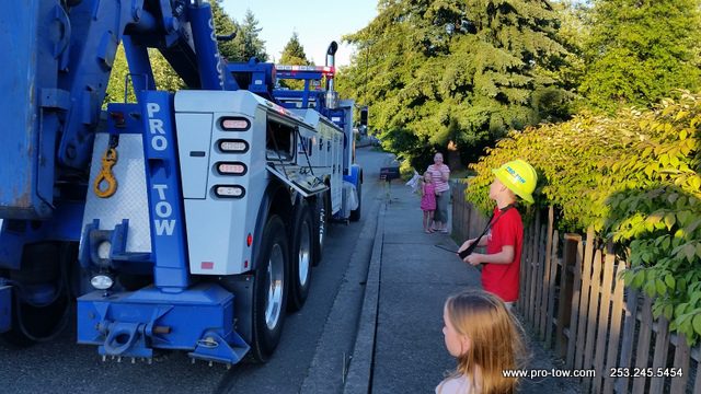 During a recent trip to Ferndale, WA to tow a tractor a trailer back to Seattle, WA we decided to stop and do a little training and recruiting at the same time. What we found was a few fabulous kids with great potential to be top tier tow truck operators. Their aptitude to operate the remote controls was like no other. They were able to flawlessly operate the tow truck boom. In addition, their excitement to work was incredible.  The police and highway departments will be in good hands as these recruits perfect their skills.